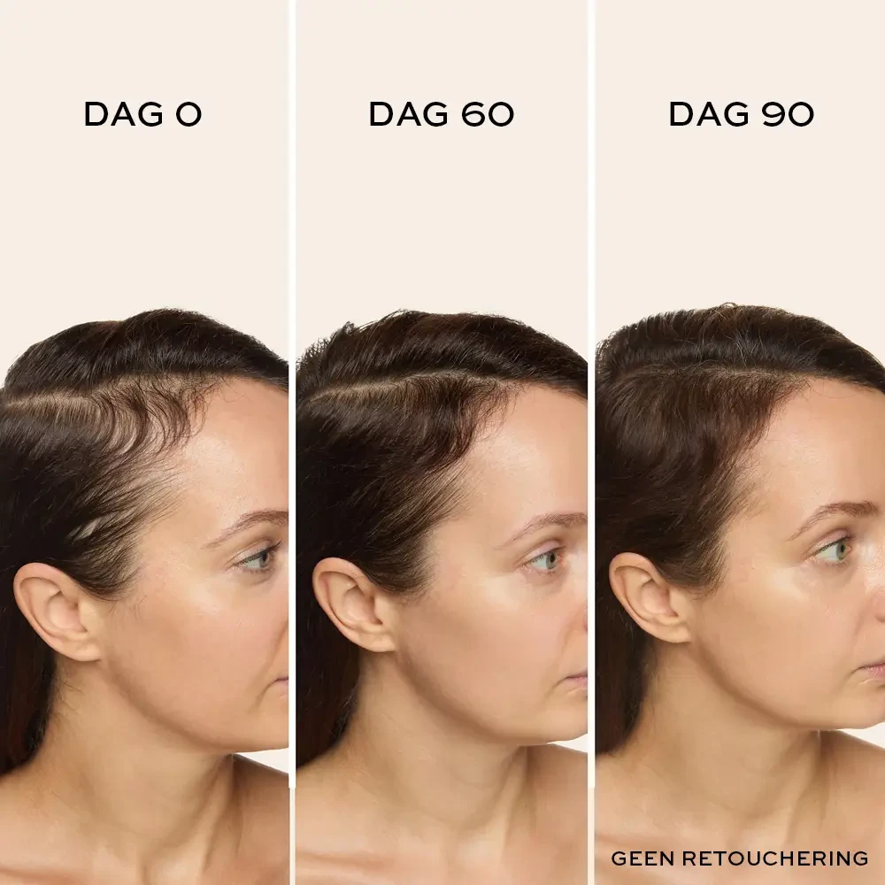 Resultaat? Minder haaruitval (tot wel 50% minder in 12 weken!) en zichtbaar voller haar dat straalt van gezondheid.