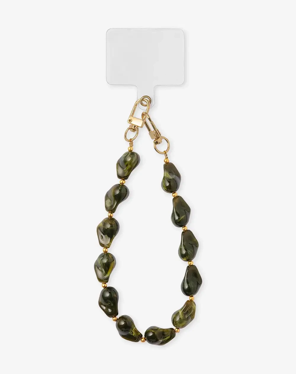 Mooie beads met een luxe uistraling die je aan je smartphone kunt hangen. Verkrijgbaar in twee trendy kleuren waaronder olijfgroen en donkerbruin.