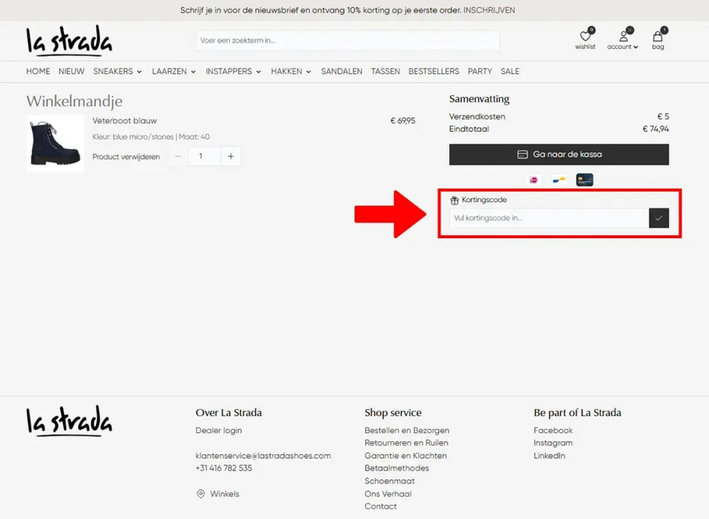 Stappenplan La Strada Shoes kortingscode gebruiken