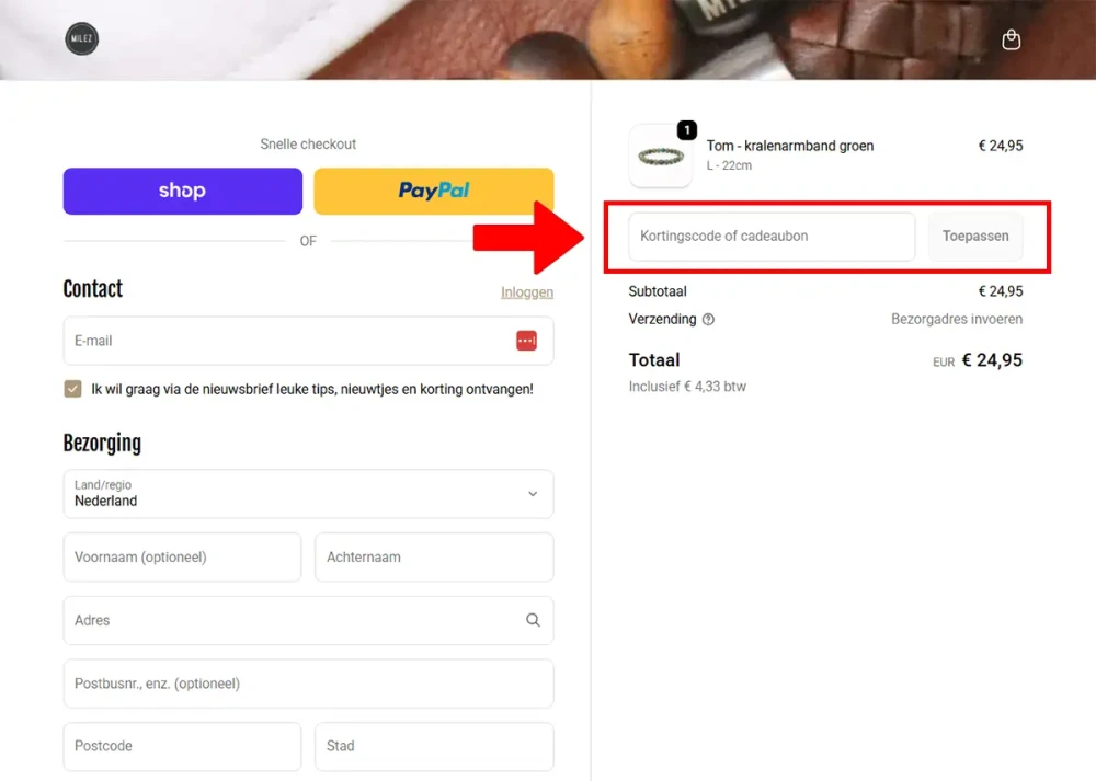 Een actiecode toepassen bij Milez Bracelets kost weinig moeite, zolang je weet waar je deze invoert tijdens het afrekenen. Door het bestelproces goed te volgen zie je direct of de korting correct wordt verrekend en welk voordeel je precies pakt op je bestelling.