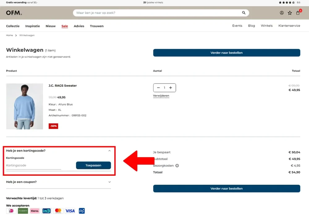 Een Only for Men kortingscode invoeren is simpel, zolang je de stappen in de juiste volgorde volgt en even checkt of de code te combineren is met andere deals. Hieronder staat een kort stappenplan dat je direct kunt gebruiken tijdens het afrekenen.
