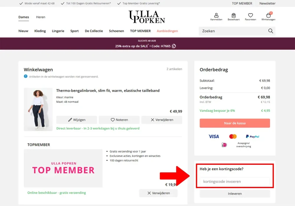 Als je een actiecode hebt gvonden van Ulla Popken, dan is het redelijk eenvoudig om deze te gebruiken. Volg onderstaand stappenplan, en je hebt binnen no-time extra Ulla Popken korting.
