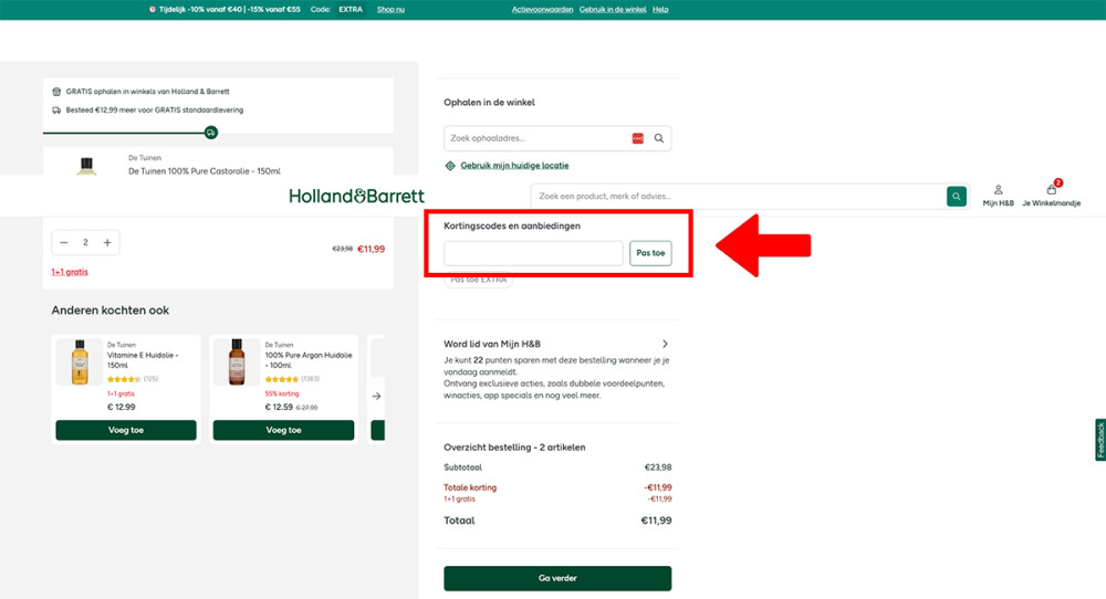 Een kortingscode gebruiken bij Holland & Barrett is eenvoudig, zolang je rekening houdt met de voorwaarden van de actie en het juiste moment in het bestelproces kiest. Kortingscodes en aanbiedingen gelden vaak voor een geselecteerd assortiment en zijn meestal niet te combineren met andere acties.